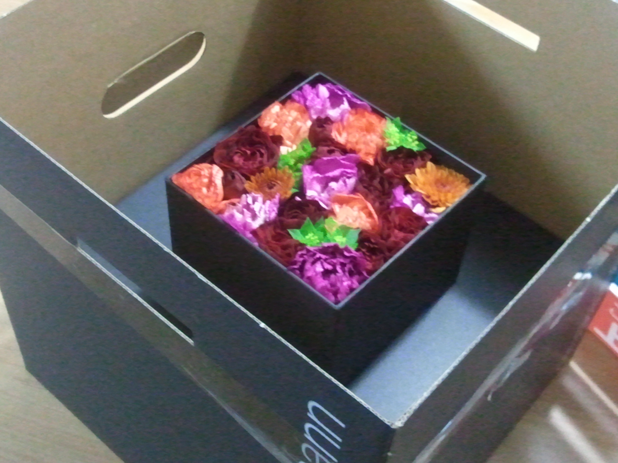 中身は..... おしゃれな箱に詰められたお花でしたemoji